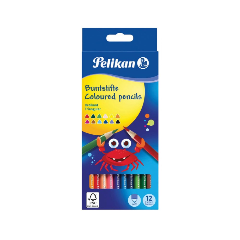 مدادرنگی پلیکان 12 رنگ مقوایی سه گوش